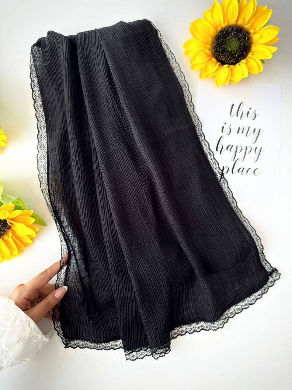 شال برشکا نخی دور دانتل مشکی ساده