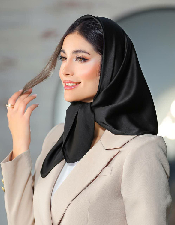 مینی اسکارف ساتن قواره ۷۵ مشکی شیک زنانه