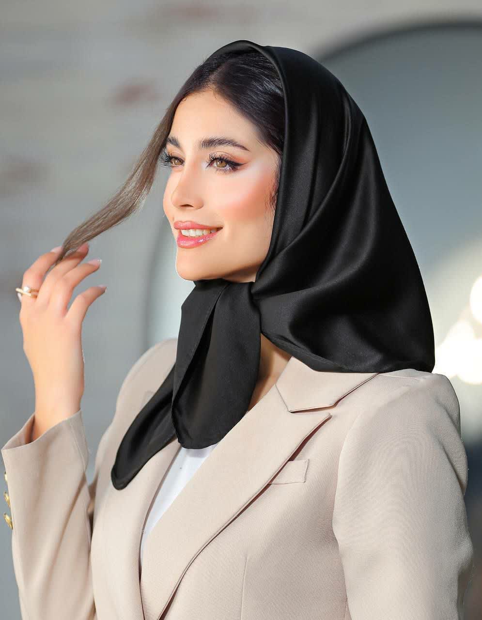 مینی اسکارف ساتن قواره ۷۵ مشکی شیک زنانه